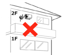 例3)浴室用電気乾燥機が点検できない(高所外壁に設置され足場がない)