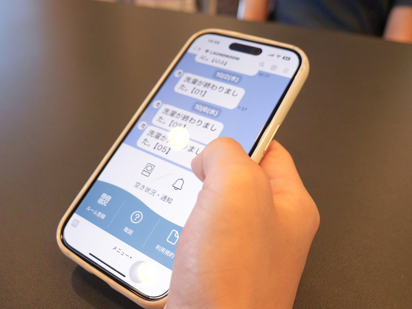 ▲LINEで洗濯機の空き状況を確認し、洗濯完了の通知を受け取ることができます