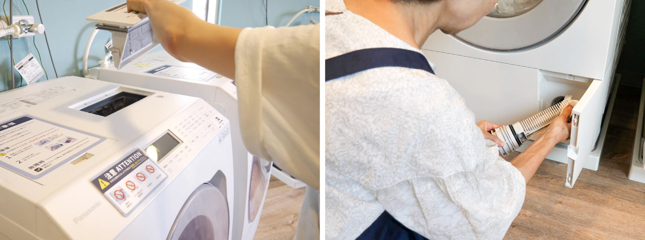 ▲利用後に寮生が乾燥フィルターを清掃、排水フィルターは丸山さんが週に2回清掃しています