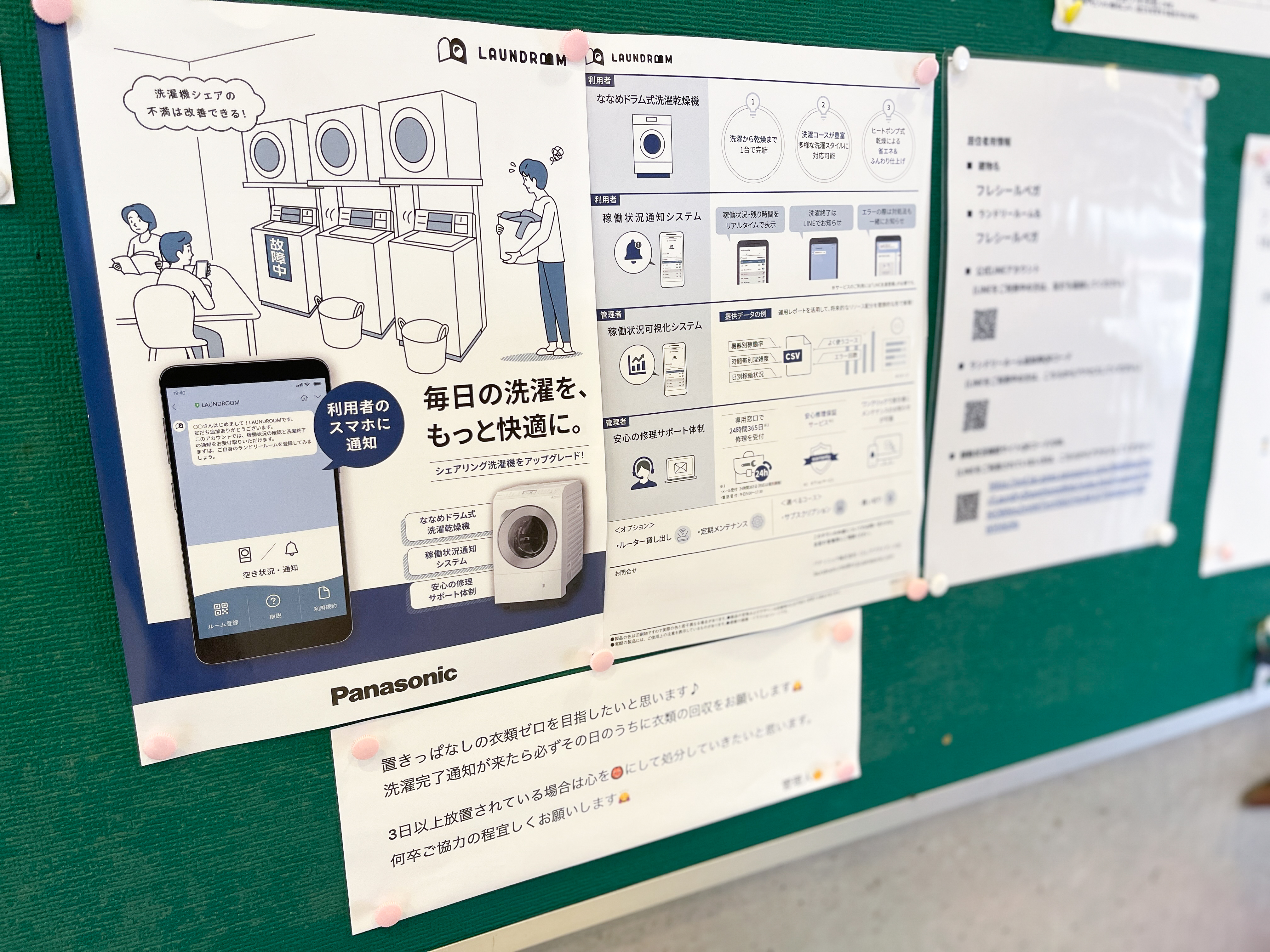 予想外のメリットもありました。「入居者から『ランドリールームが空いているのはいつ?』と問い合わせがあったんです。いただいていた稼働状況のレポートから、具体的な時間帯を伝えることができました」と丸山さん。クラウド管理により、利用者にも管理者にも有益な情報が可視化されるようになったのです。