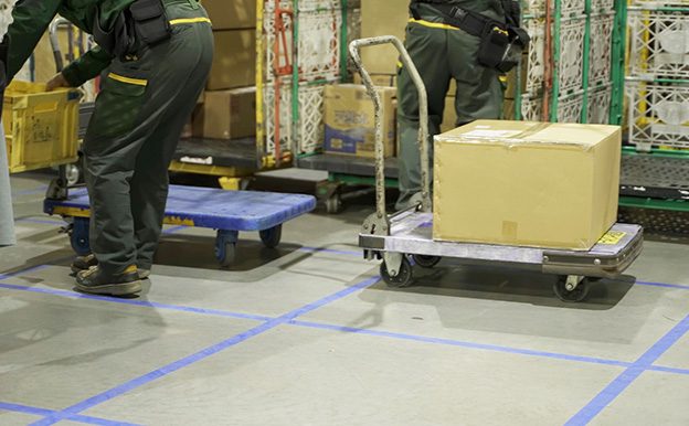 山下様: 1つめは、 職場環境の改善です。職場を清潔にすることで、社員の働きやすさを向上させようと考えました。2つめは、安全な職場環境を作ることです。集荷や配達などの締め切り時間に間に合わせるため、素早く効率的な動きが求められる中で、歩行導線にゴミや不要なものがあると怪我につながる危険があります。