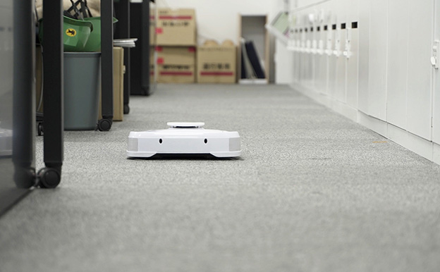 山下様: 現在、約100㎡の事務所で1台、会議室と廊下を合わせた約50㎡で1台、合計2台のRULO Bizを使っています。RULO Bizは、退勤後の23時から清掃を開始するようにセットしてあり、夜中に稼働しています。フロアはいつも 清潔な状態が保たれていますので、スタッフもセールスドライバーも心地よく業務を行うことができて喜んでいます。