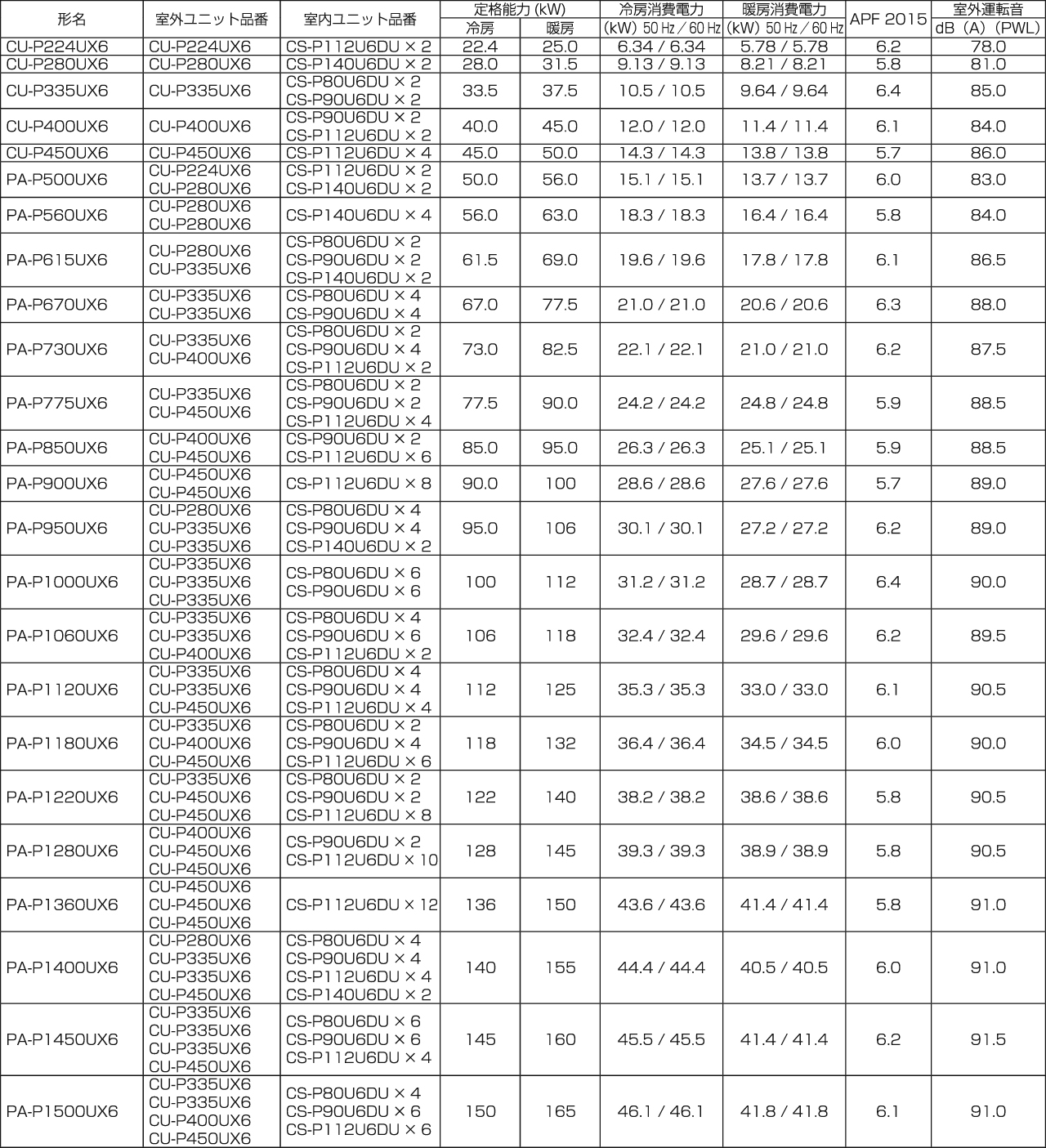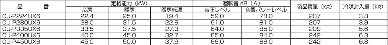 - この仕様値は、JIS B8616パッケージエアコンディショナ、JRA-4002パッケージエアコンディショナに基づいた数値です。