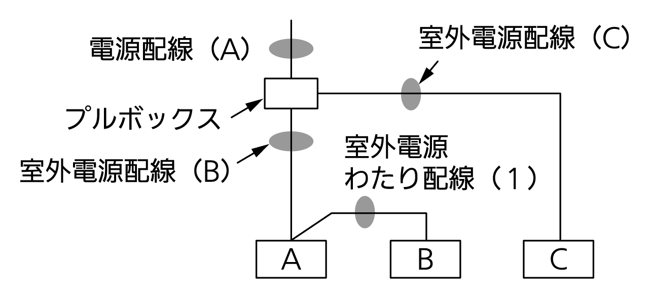 ※ 電線管とは、配線を通す金属管、塩ビ管を示します。電線管なしの場合は、「電気配線計画(電線管なし)」を参照してください。