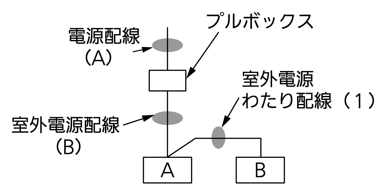 (注1) 電源太さが室外電源端子板の電線最大太さを超える場合は、電源盤からの電源線をプルボックスで中継し(室外ユニット近傍)、下表に従ってサイズダウンをしてから入線してください。この場合、室外電源配線(A)が必要となります。