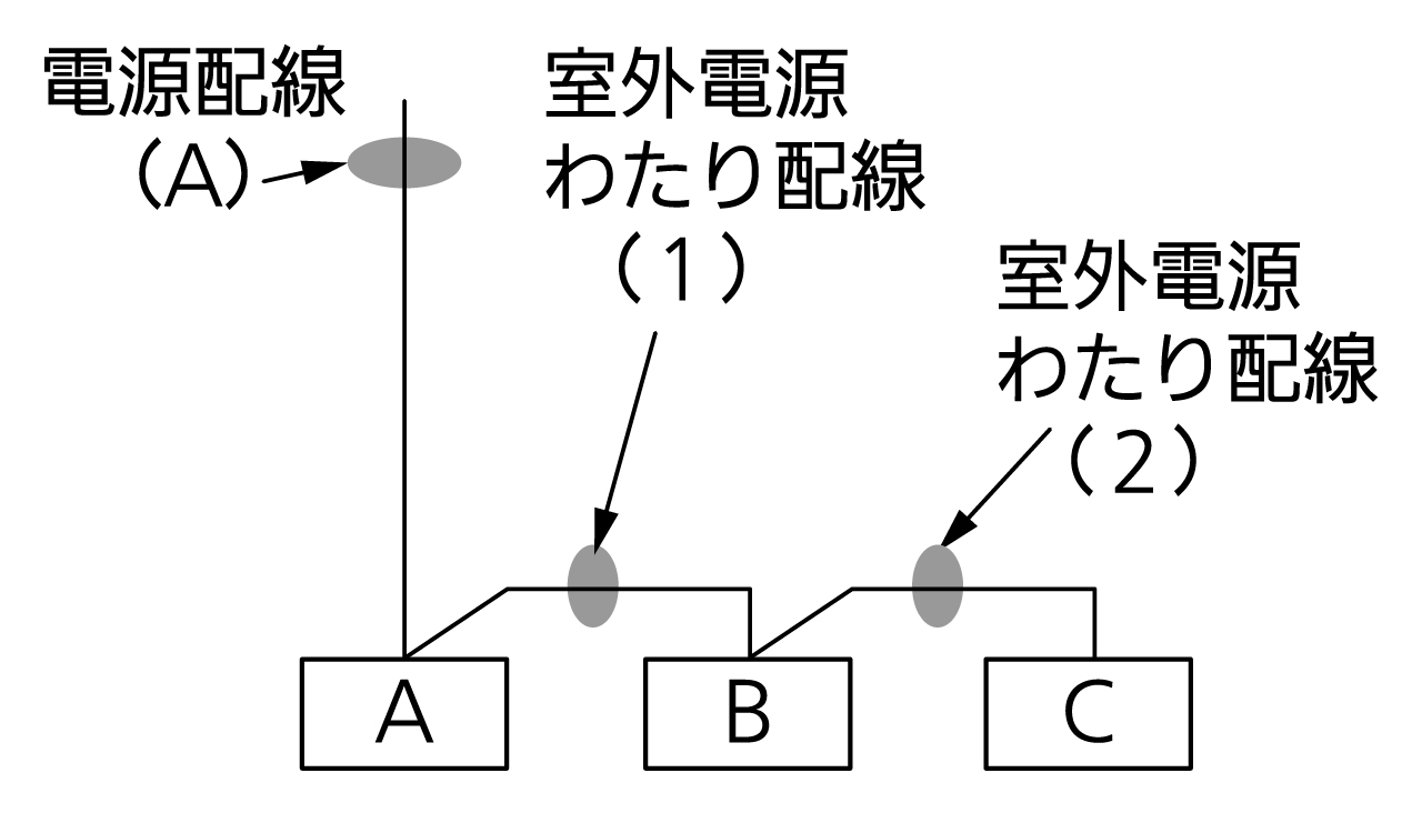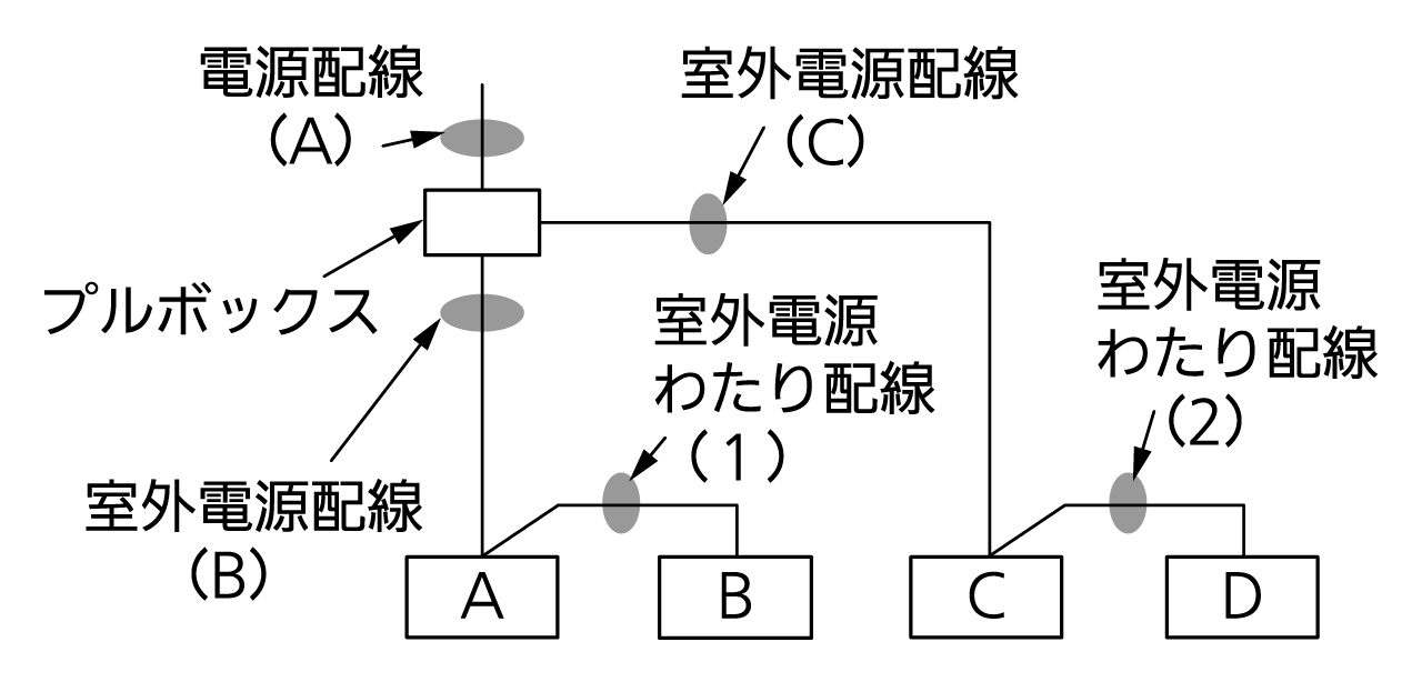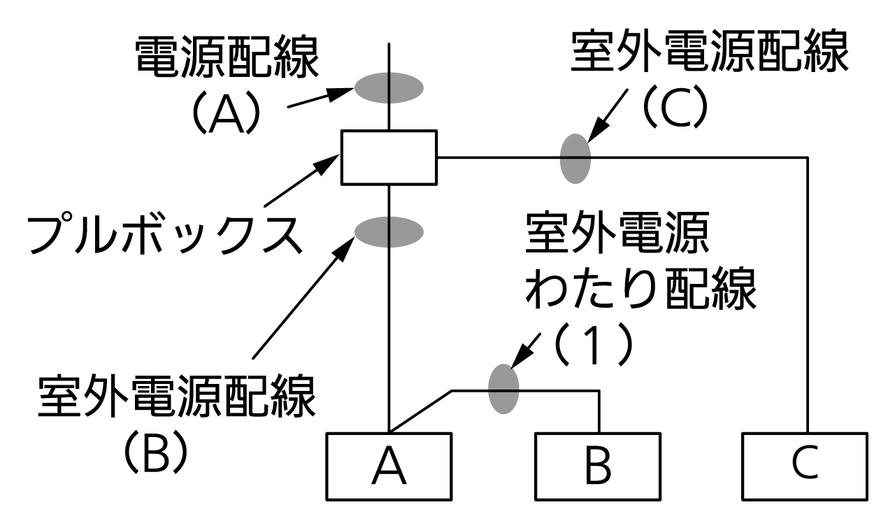 ※ 電線管とは、配線を通す金属管、塩ビ管を示します。電線管ありの場合は、「電気配線計画(電線管あり)」を参照してください。