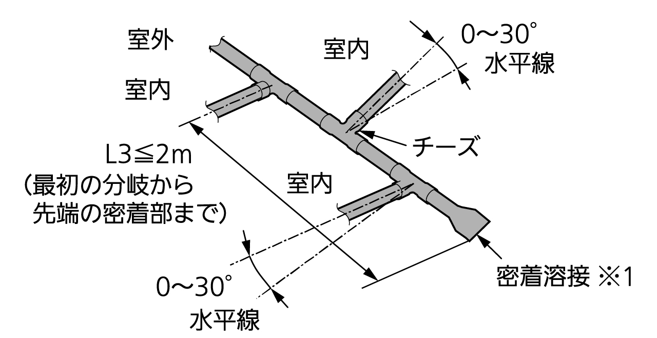 - ヘッダー分岐方式は、室外側では使用しないでください。