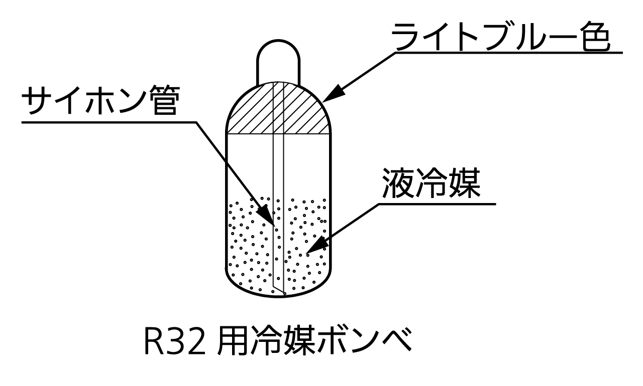 - R32 用冷媒ボンベはサイホン管付きとなっています。