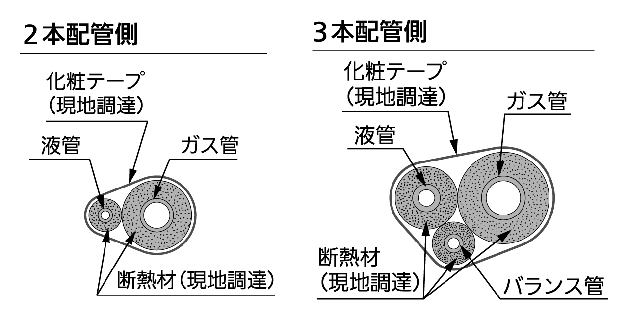 - 気密試験・真空引き終了後、必ず配管の断熱工事を行ってください。