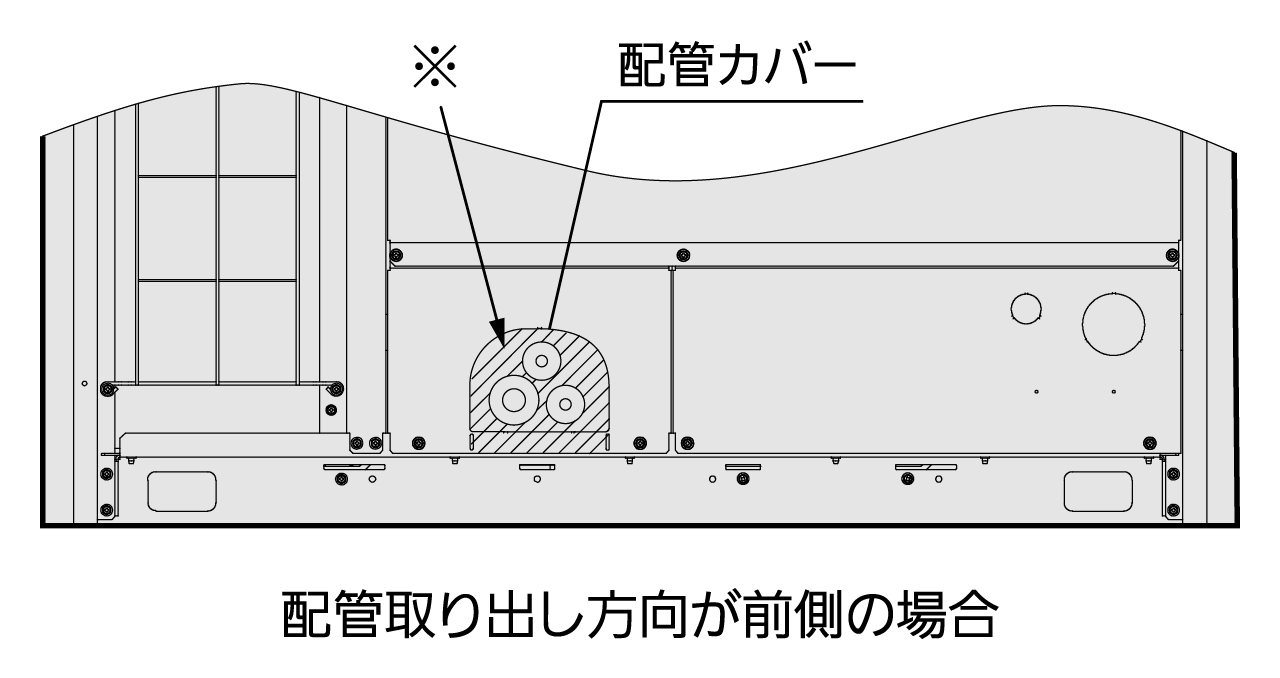 - 配管・配線取り出し部の開口部は必ず塞いでください。小動物の侵入や雪・雨水浸入にて、機器破損の原因になります。