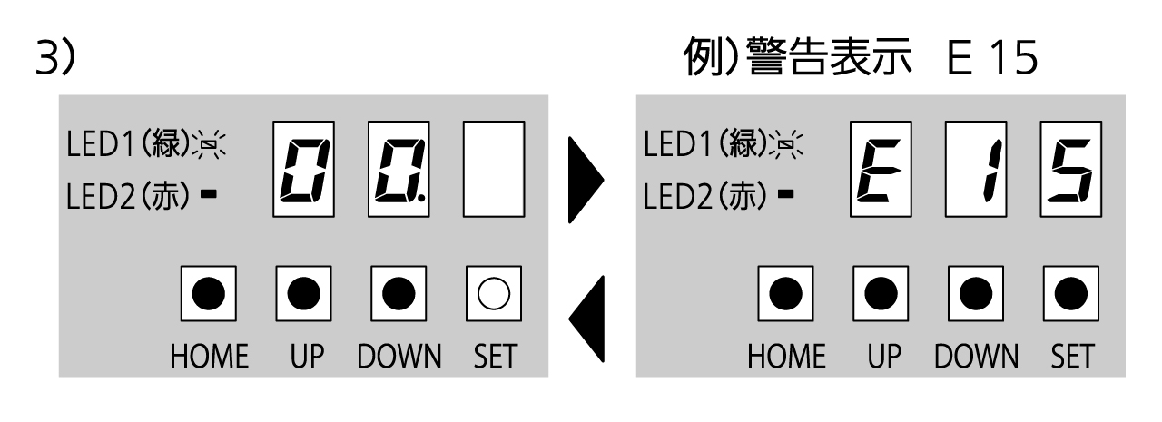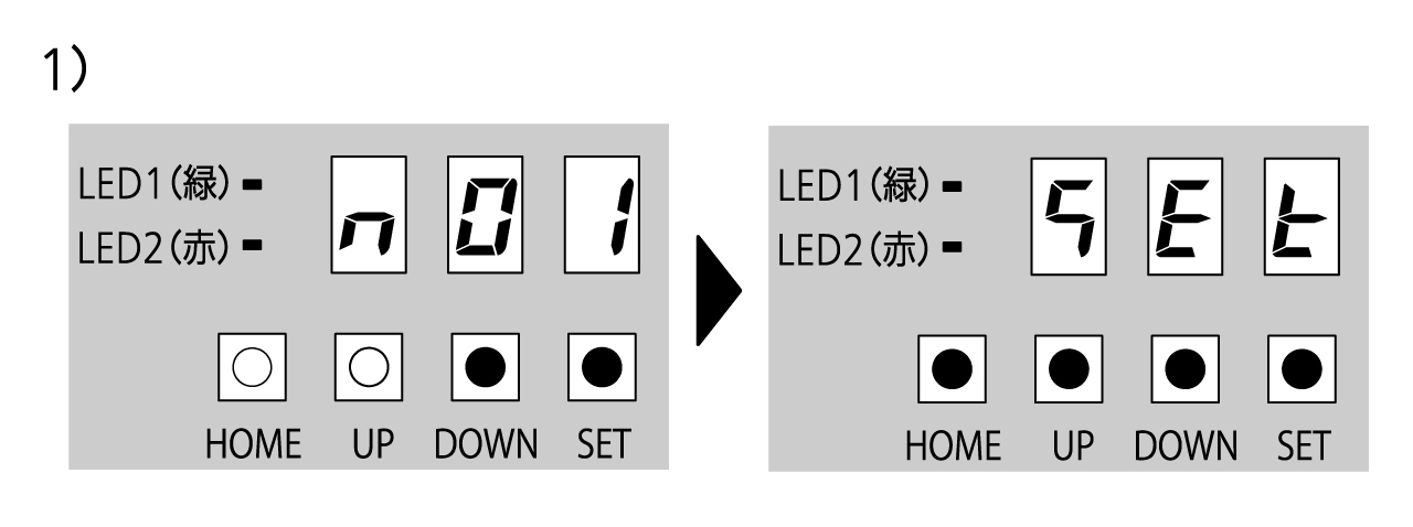 3)SETキーを押してください。緑のLEDが点灯し、確認番号「