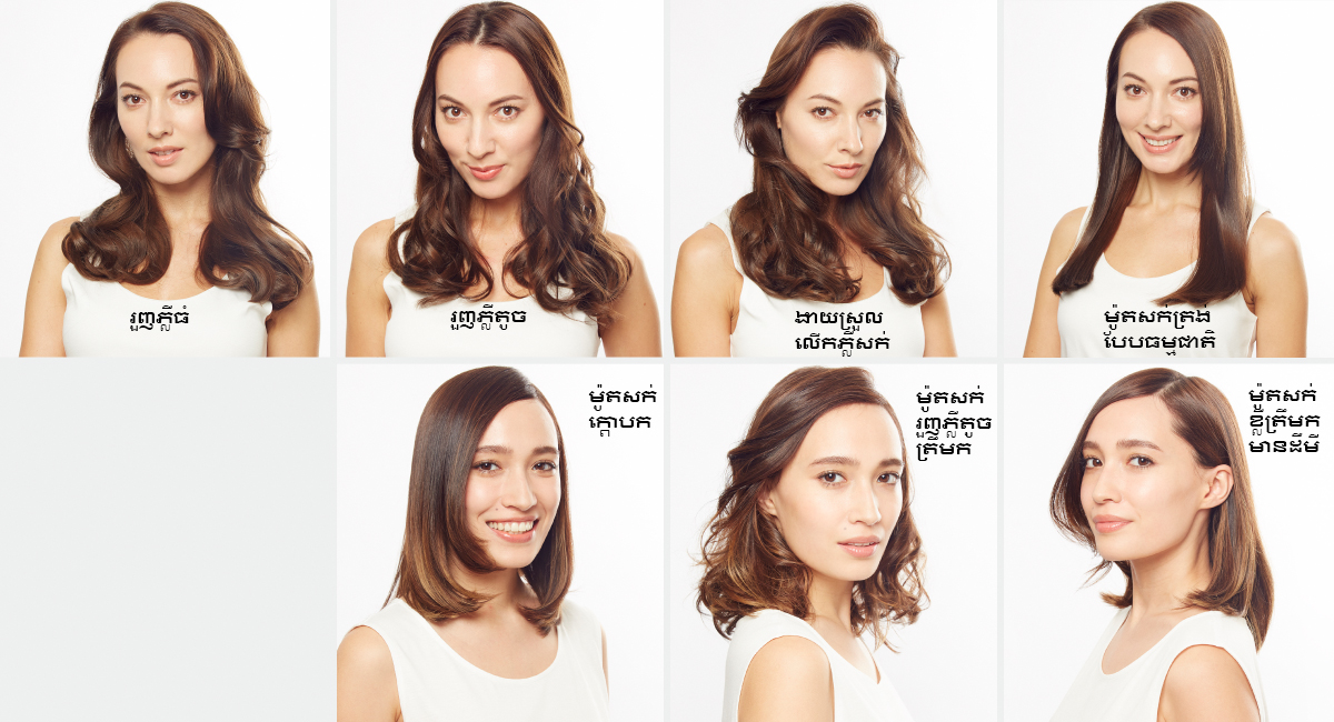 បង្កើនសម្រស់របស់អ្នកទៅតាមប្រភេទសក់ និងម៉ូតដែលអ្នកចង់បាន។ * ប្រសិទ្ធភាពនៃម៉ូតសក់ អាចមានភាពខុសគ្នាទៅតាមប្រភេទសក់របស់មនុស្សម្នាក់ៗ។
