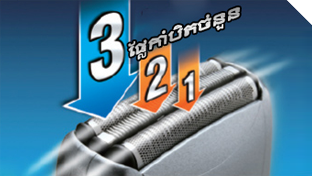• ម៉ាស៊ីនកោរពុកមាត់សាកថ្ម• ផ្លែកាំបិតចំនួន 3 លេចឡើងដាច់ដោយឡែកពីគ្នា ដើម្បីកោររោមបានយ៉ាងងាយស្រួល• ក្បាលកោរងាកមានភាពបត់បែន