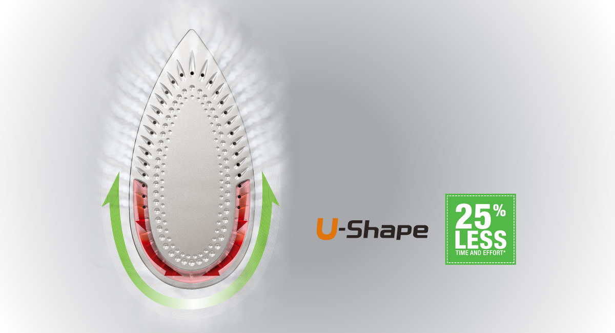 បញ្ចេញចំហាយទឹកពីបំពង់ 29 នៅតាមចង្អូររាងជាអក្សរ U ដែលសាយភាយពេញលើបាត ដោយបង្កើនអត្រាចំហុយខ្ពស់ជាងពេលណាណា 25%*។ ជាមួយនឹងការចែកចាយចំហាយទឹកបានស្មើគ្នា វាអាចអ៊ុតសាច់ក្រណាត់ឱ្យទន់ ហើយលុបបំបាត់ស្នាមជ្រួញ។ ធានានូវការអ៊ុតបានស្អាតអស្ចារ្យ។