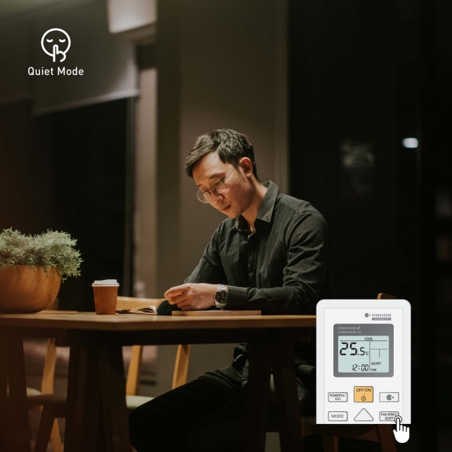 Quiet mode reduces the noise level of the indoor unit for a quiet, peaceful environment