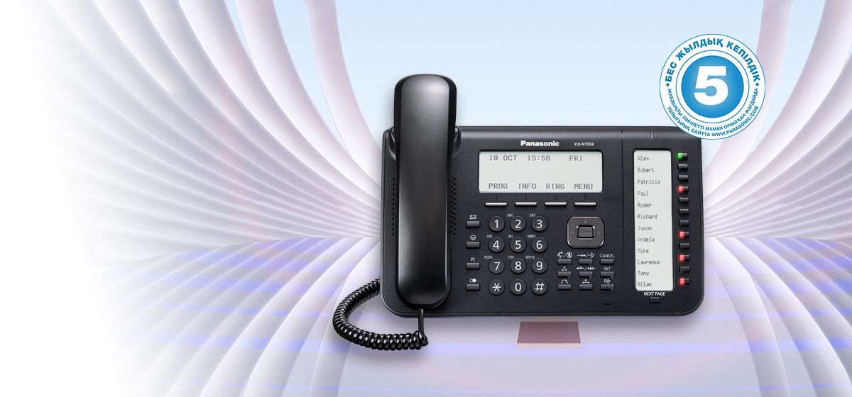 IP-телефоны (MGCP) тек IP-АТС Panasonic құрылғысымен ғана үйлесімді және кеңсе қызметкерлерінің тиімді әрі жайлы жұмысын қамтамасыз етуге арналған кеңейтілген мүмкіндіктерге ие.