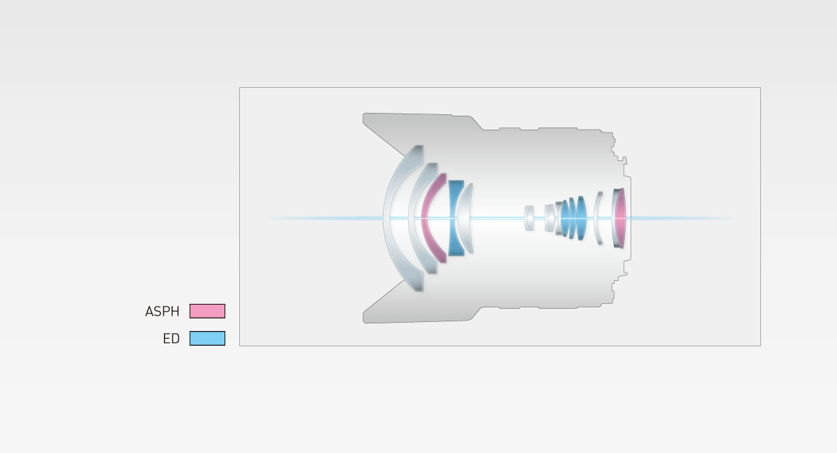 • عدستين لاكرويتين و 4 عدسات ED لأداء بصري متفوق