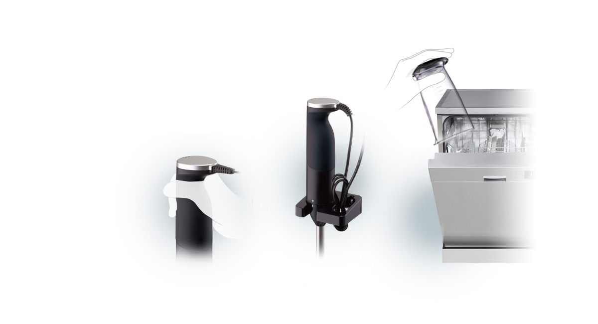 مقبض اليد الذي يتميز بسهولة الإمساك يناسب اليد بشكل مريح، ويعتبر الذراع المصنوع من الفولاذ غير القابل للصدأ والدورق ووعاء المفرمة أدوات يمكن وضعها في غسالة الأطباق بأمان للتنظيف السهل.