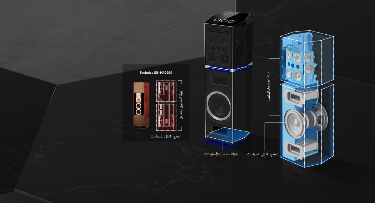 بنية الصندوق المنفصل - الصوت المتوسط وثلاثي الطبقات منفصلان عن الجهير، مما يمنع تداخل الأصوات الواضحة.
