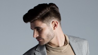In the undercut, the top stays long while the sides and back are short. The contrast between the two layers gives this cut its daring, creative style. You can part the top, tease it rough, or just let it hang. This version is slicked back for a dashing style.