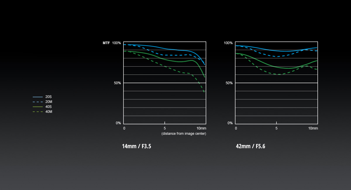 For lenses that are capable of compensating distortion, the horizontal axis of the MTF shows the
