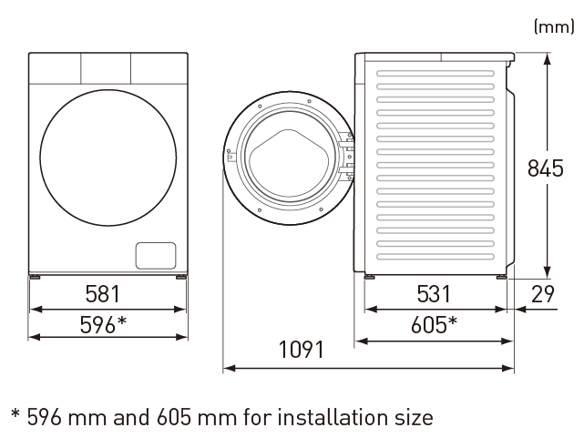 596 x 605 x 845 mm
