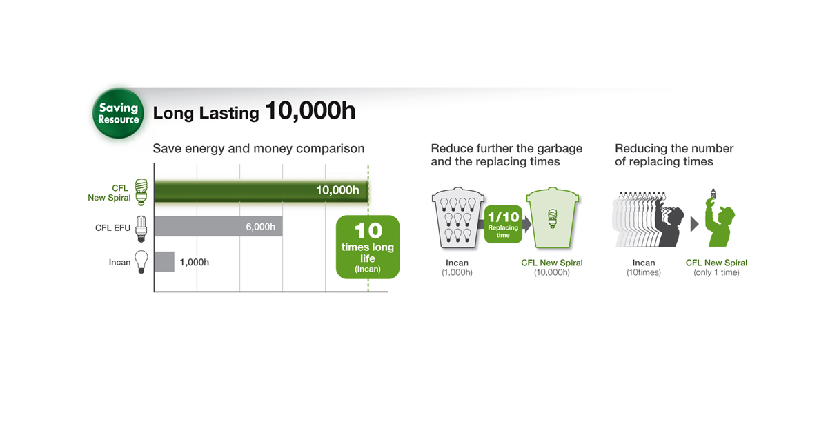 Industry's top class efficiency & 10,000 hours long life by Panasonic's unique technology and design