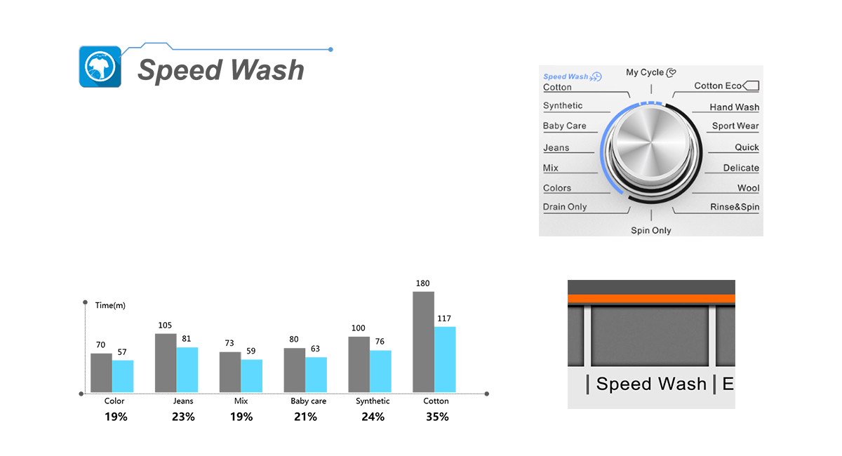 • It, even increases the efforts in washing process, to achieve a key to accelerate the effect of saving washing time and wash clothes clean and fast.