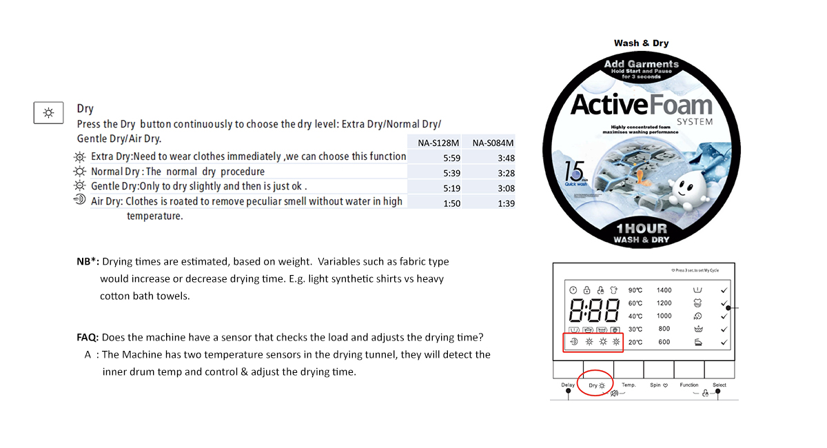1 Hour Wash/Dry Function