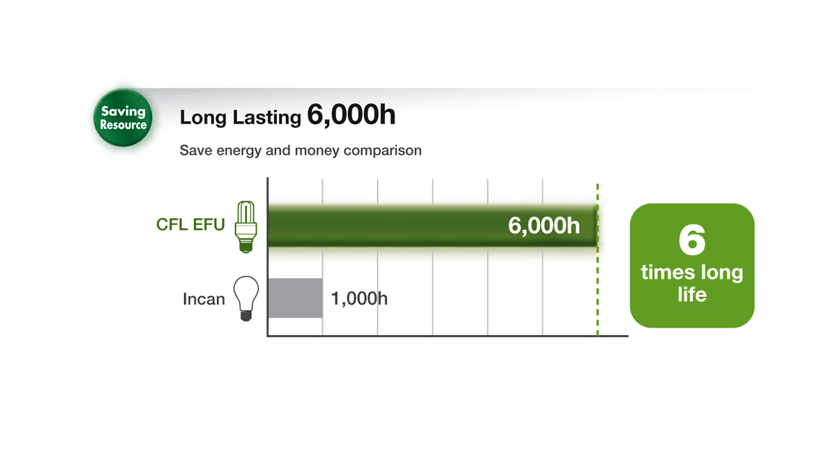 وفر الكهرباء والمال مع مصباح طويل العمر 6000 ساعة