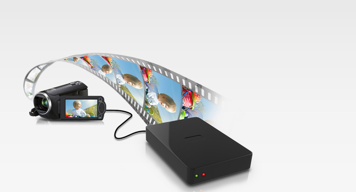 البيانات المخزنة يمكن نسخها بسهولة إلى قرص صلب خارجي HDD دون الحاجة لاستخدام جهاز حاسوب.