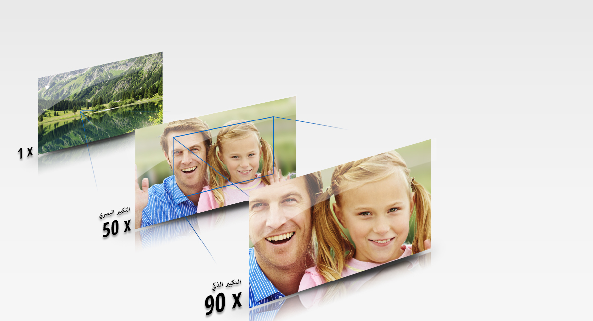 كاميرا مزودة بتكبير ذكي 90x/تكبير بصري 50x. يتيح لك هذا الطراز سهولة تصوير الأهداف البعيدة والتي يصعب جدًا تصويرها بوضوح باستخدام وظائف التكبير التقليدية.