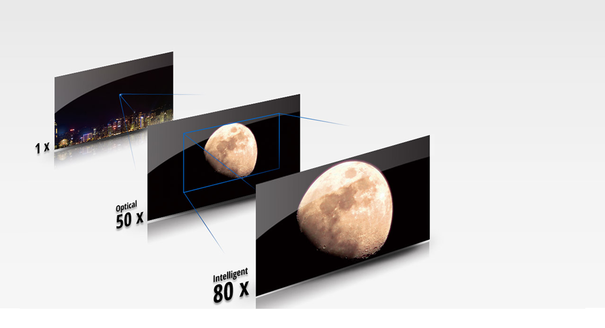 التقريب الذكي يعطي طاقة تقريب 80x لتقريب الأشياء البعيدة.