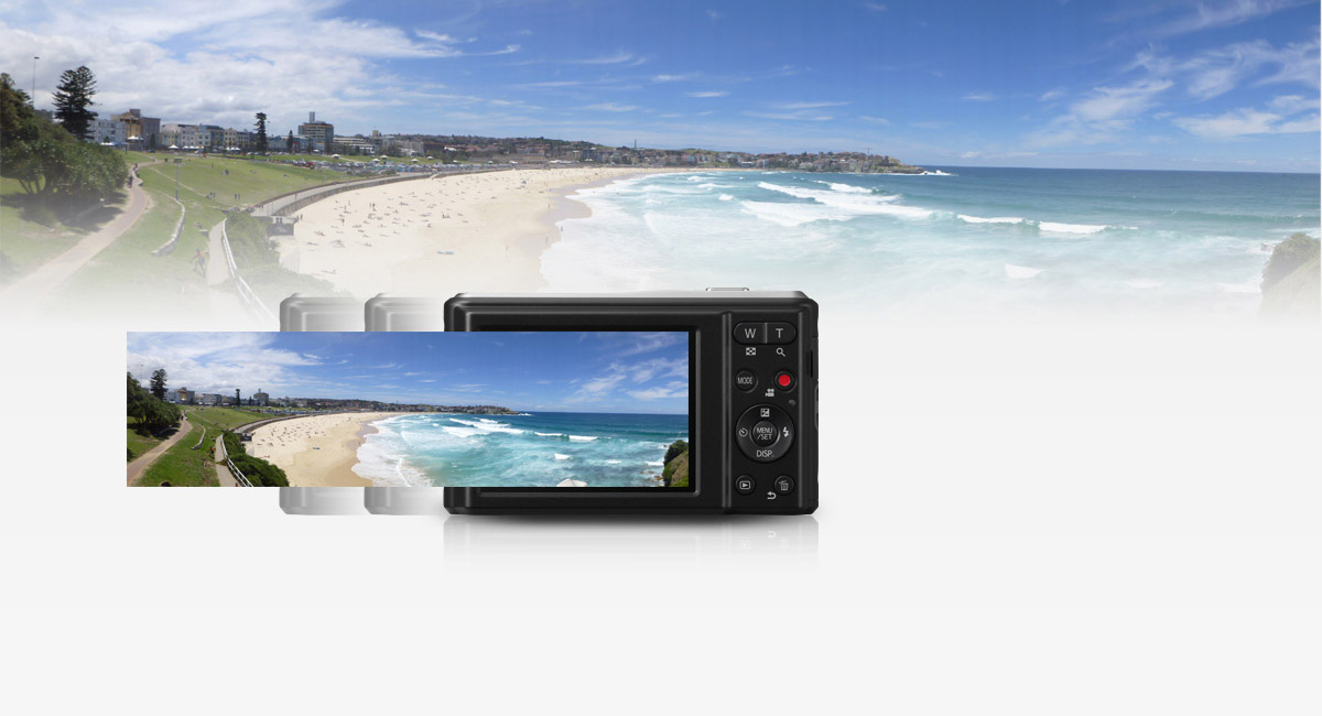 وضع تصوير البانوراما في وضع المشاهد يجعل من الممكن تصوير بانوراما أفقية / رأسية حيث تصطف الصور اللاحقة على الصورة السابقة.