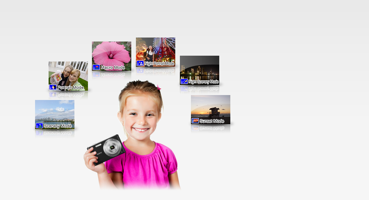 نظام الاختيار التلقائي للمشهد*1 يشعر بالطروف المحيطة ويقوم تلقائياً باختيار أي من الأوضاع: طبيعة، صورة شخصية، ماكرو، صورة شخصية ليلية*2، طبيعة ليلية، الغروب.