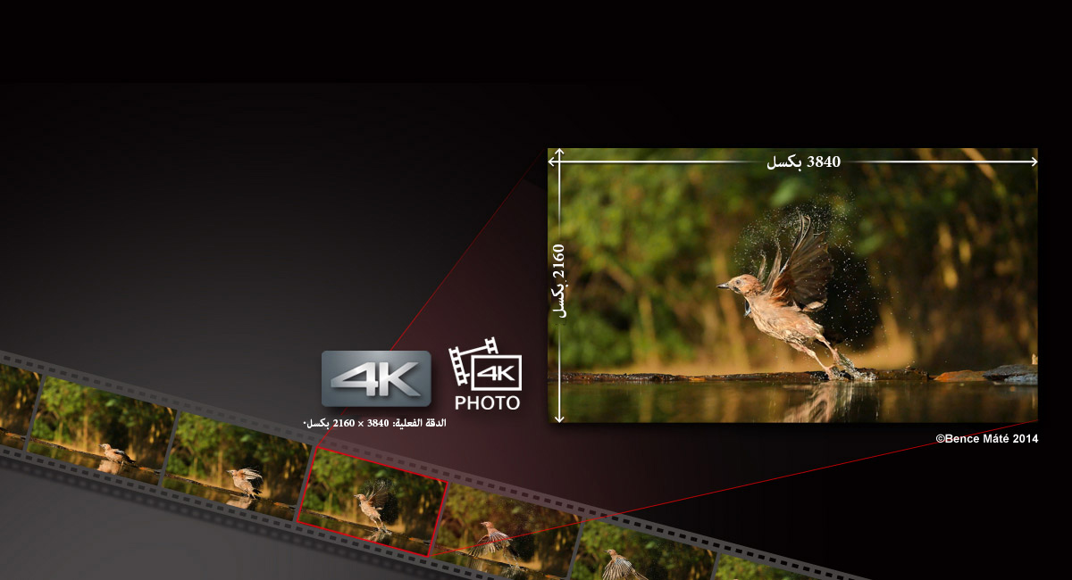 استمتع بتسجيل فيديو 4K واقعي وعالي الدقة *. فهي تبشر بشكلِ جديد من "صور 4K" الإبداعية من خلال السماح لك بقص اللحظات السحرية بدقة 3840 × 2160بمعدل 8 ميجابكسل من لقطات الفيديو بدقة 4K. بمجرد الدخول إلى وضع "صور بدقة 4K"، يتم ضبط مستوى الإنارة على 0-255، وهو مناسب للصور. يمكنك أيضًا اختيار إما أو 3:2 أو 3:2 بالإضافة إلى 16:9 باستخدام تبديل العرض إلى الارتفاع.