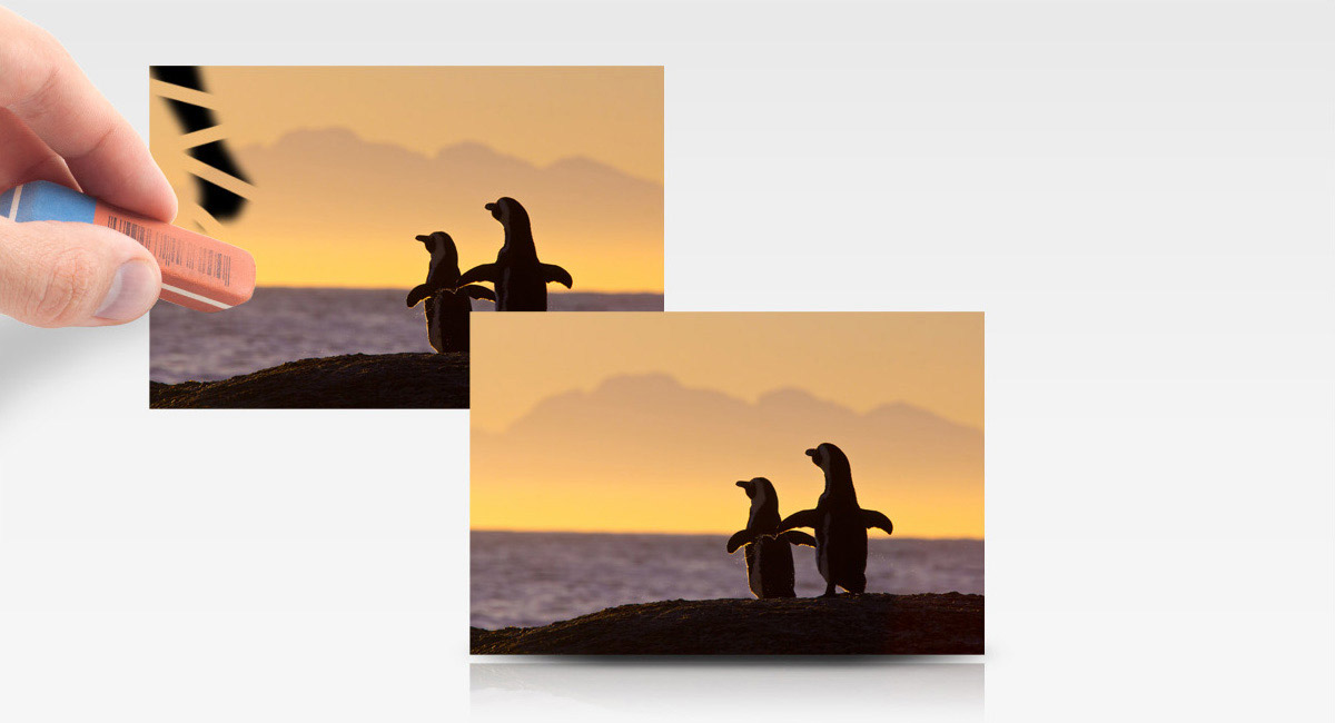 وظيفة تحرير الصور تمكنك من مسح الأشياء أو الأشكال غير المرغوب بها في الصورة عن طريق لمسها بالأصبع على شاشة الكاميرا، فتختفي بدون الإضرار بالصورة.