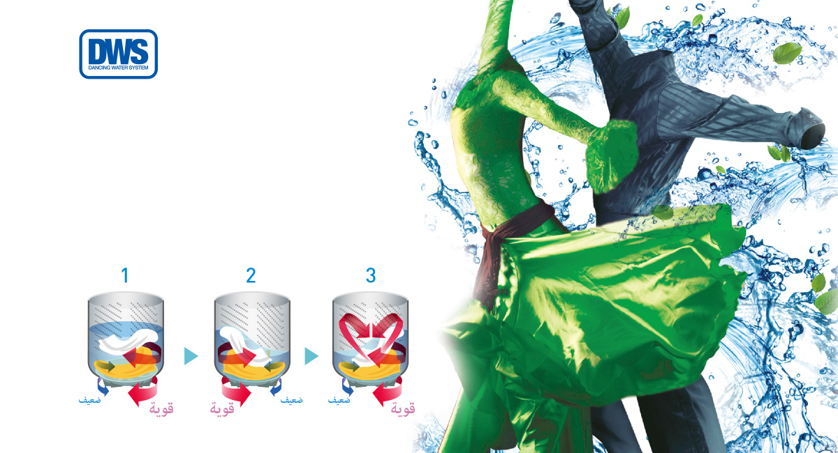 بفضل التحكم الدقيق في الطاقة للعاكس، يمكن إجراء دوران عكسي سريع للنابض. ينتج عن ذلك موجات متصاعدة تحرك الملابس بشكل موحد لأعلى ولأسفل.