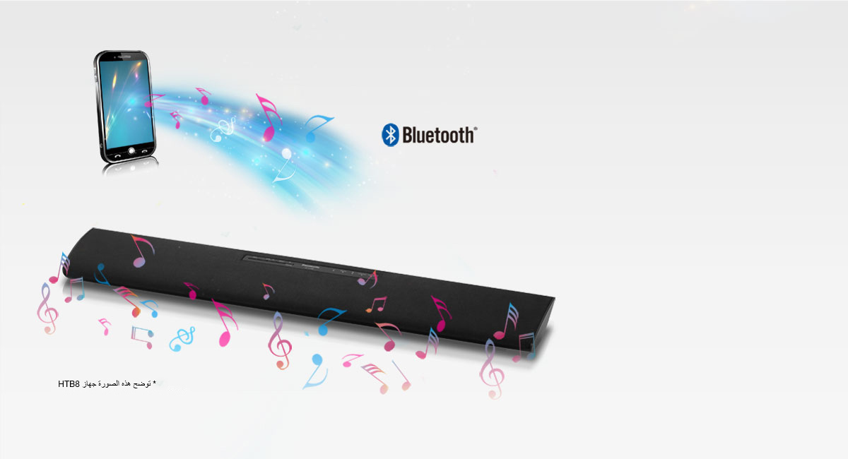 يتميز نظام HTB8 بتصميم أنيق مثلث الشكل للاستخدام البسيط وبشكل جذاب في غرفة المعيشة ونظام صوت عالي الجودة مكون من 2 قناة. كما يتميز بالتوافق مع تقنية Bluetooth® ويتيح لك الاستمتاع بالموسيقى، فضلاً عن الأفلام، من الهاتف الذكي بصوت ديناميكي حقيقي.