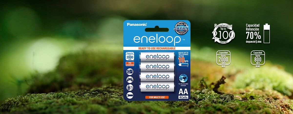 Las pilas eneloop son ideales para productos de alto consumo y artículos almacenados para casos de emergencia, ya que mantiene hasta el 70% de su capacidad incluso después de 5 años. Precargadas con energía solar las pilas eneloop están listas para utilizarse en el momento que sea necesario.