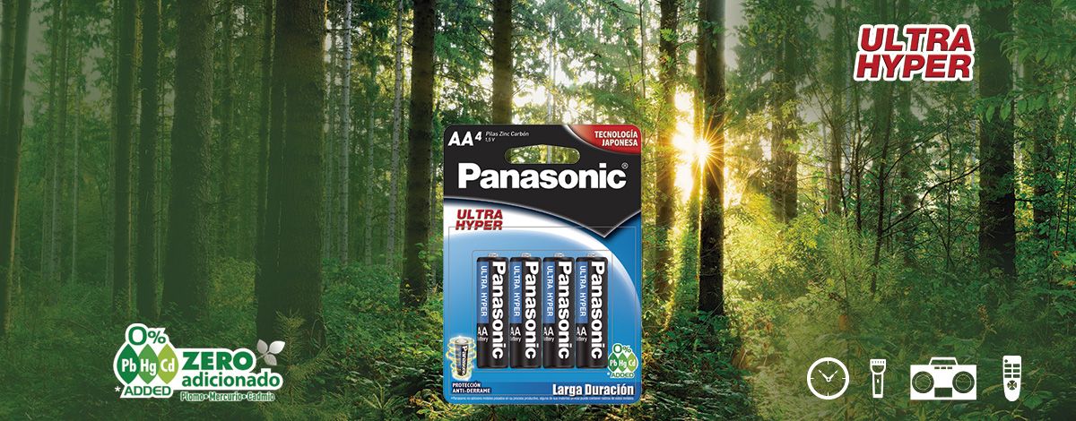 Las pilas Ultras Hyper de Panasonic son ideales para productos de bajo consumo de energia, como apoyo a la ecologia las pilas Ultra Hyper no cuentan con metales pesados como material adicionado, lo que permite que las puedas desechar de manera normal.