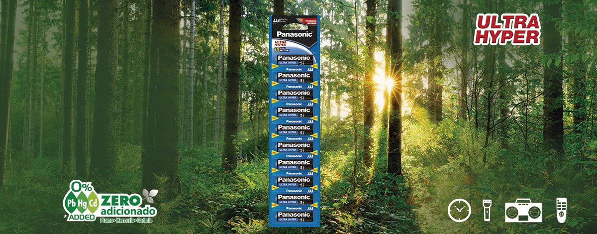 Las pilas Ultras Hyper de Panasonic son ideales para productos de bajo consumo de energia, como apoyo a la ecologia las pilas Ultra Hyper no cuentan con metales pesados como material adicionado, lo que permite que las puedas desechar de manera normal.