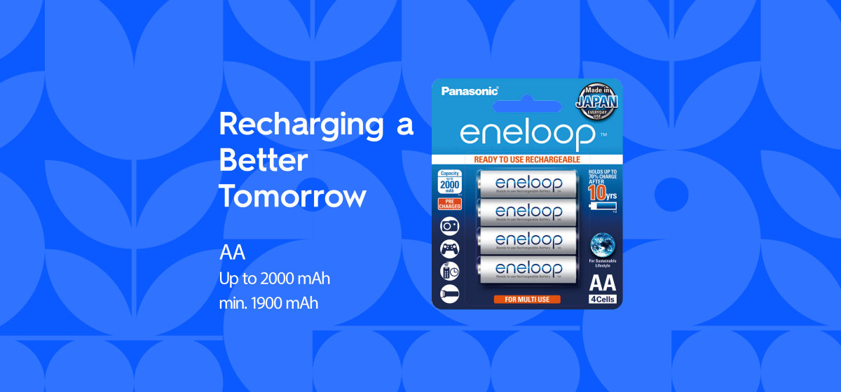 Panasonic eneloop is designed, manufactured, and tested in Japan to rigorous quality-control standards.