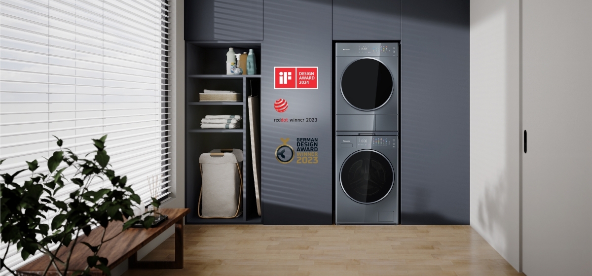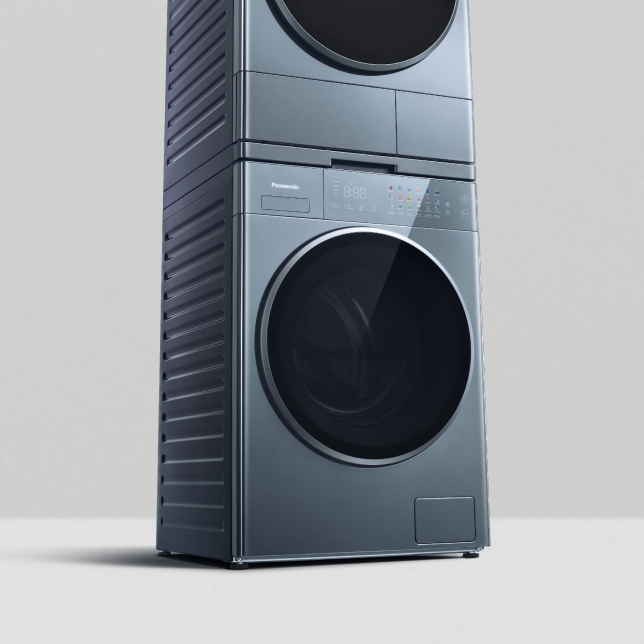 Maximise your space by stacking. The stacking kit (N-SKT2AMY) includes a drawer, ideal for placing folded laundry or any items, offering convenience and efficient space use.