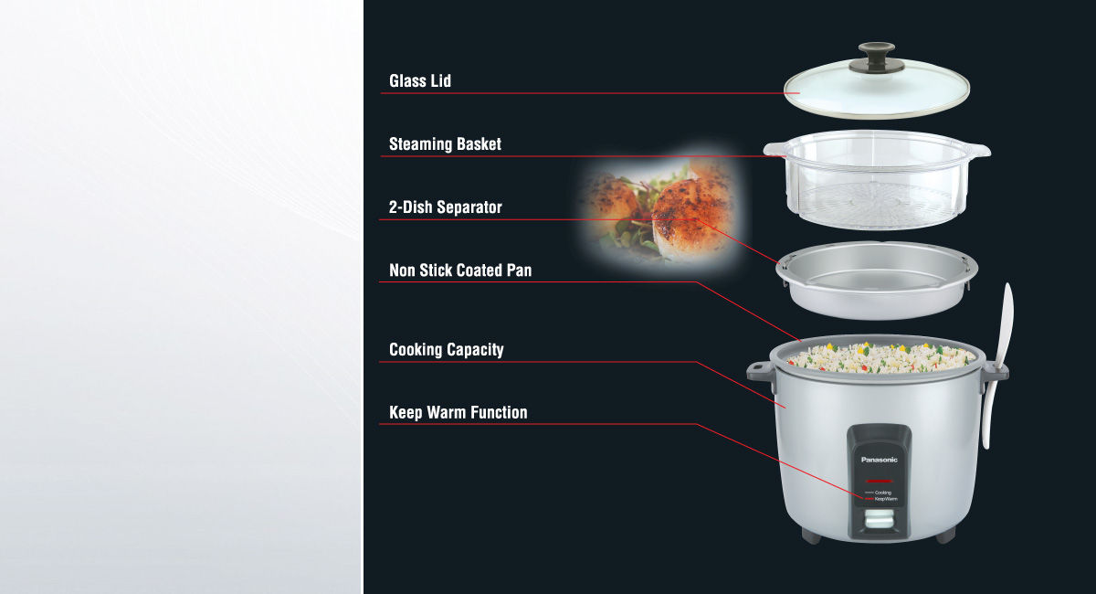 Get the Panasonic SR-Y22FGJ rice cooker and dish out a variety of rice delicacies (eg: Briyani) effortlessly for your entire family. Made of polycarbonate, this rice cooker is durable and will function smoothly for long. Cook up to 2 dishes at the same time and enjoy a sumptuous meal. You can even steam your fish or vegetables and meat too in the cooker.