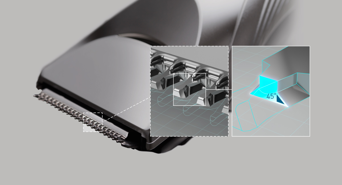 Use the clipper to easily make sharp, precise lines on your hairline, jaw, neck, and other areas. The secret to this extra precision is the narrow gap between the moving and fixed blades.