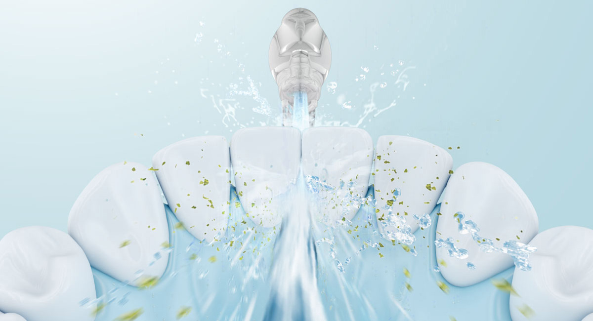 The shock waves generated when air bubbles burst amplify the power of cleaning. This helps to remove more food debris on and between teeth, even with the same level of water pressure.