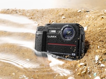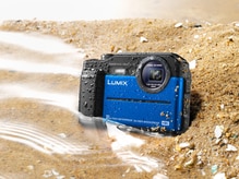 The new LUMIX FT7 boasts even more rugged design that enables waterproof to 31 m / 102 ft, dustproof, shockproof to 2 m / 6.6 ft, freezeproof to -10 degrees C / 14 degrees F and pressure resistance to 100 kgf / 220 lbf. Thanks to its minimum apertural area and the rubber padding and reinforced glass inside the camera, the LUMIX FT7 features an airtight body protected against water immersion, dust and sand. Body case is even more thickened to withstand high water pressure of 31m / 102ft. The shockproof allows the camera become droppable from a height up to 2.0m/6.6ft in accordance with the "MIL-STD 810F Method516.5-Shock" test standard. All components including the lens unit are reexamined to endure the temperature as low as -10 degrees C / 14 degrees F.