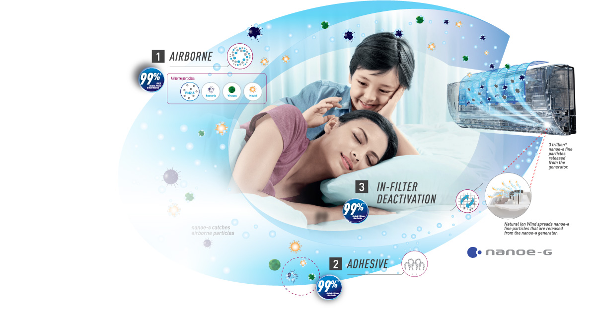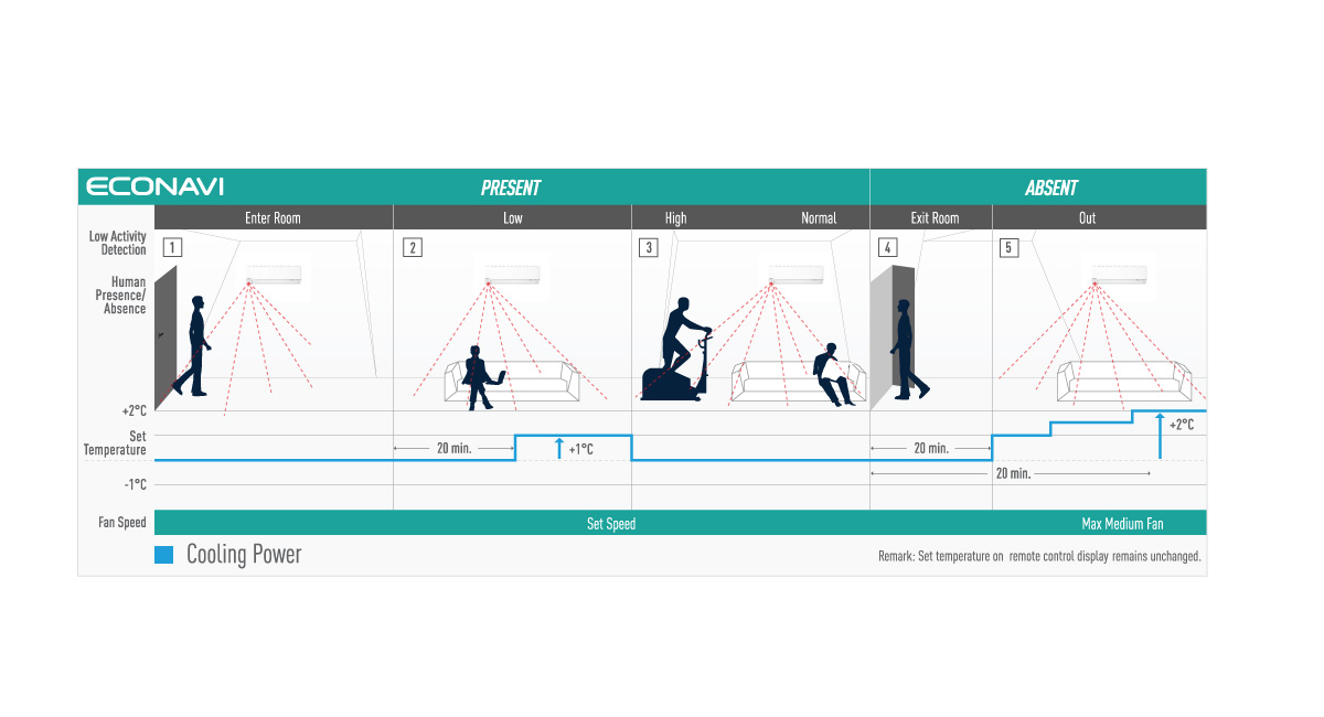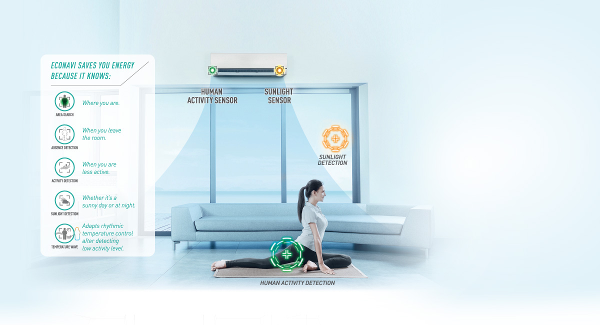 Cool.Eco.Together - Panasonic Air Conditioner ECONAVI + Inverter works intelligently to adapt your lifestyle and optimize maximum energy savings of up to 65%*. Save you even more money, along with the environment. It features ECONAVI with Temperature Wave, Intelligent Inverter, iAUTO-X, nanoe-G, R410A Gas and 5-Star Energy Rating.