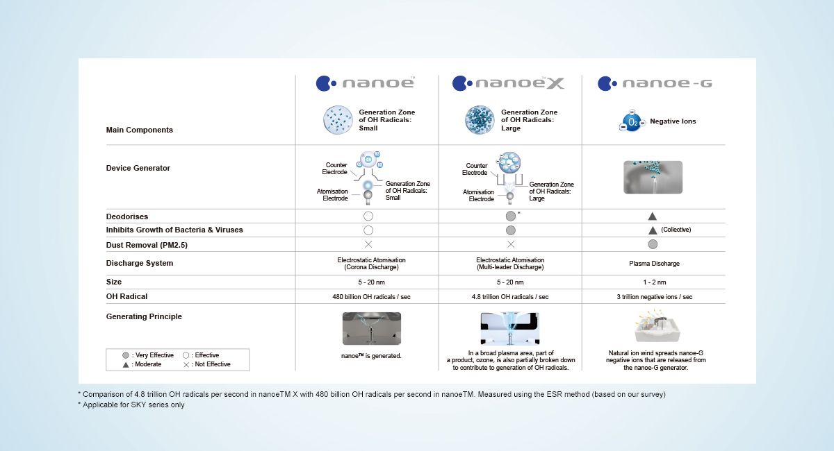 AEROWINGS (Shower Cooling & Direct Cooling), nanoeTM X, nanoe-G, Inverter, ECONAVI, R32 Refrigerant, 5-Star Energy Rating.